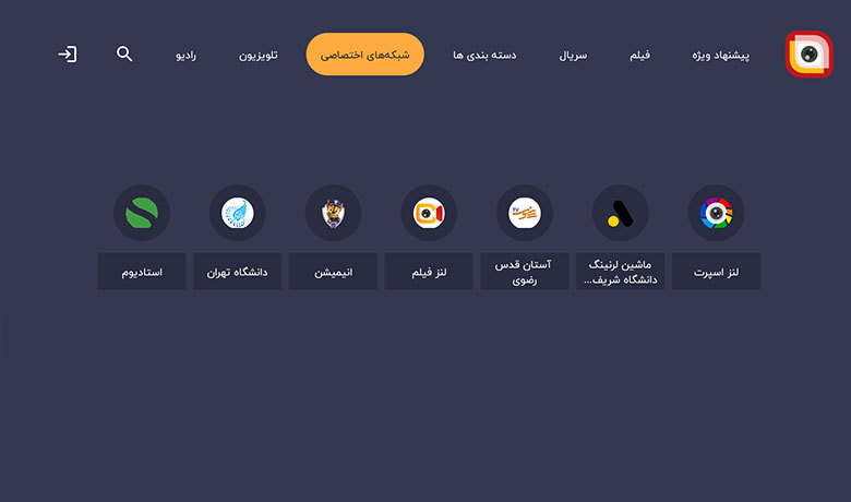 - شبکههای اختصاصی: در بخش شبکههای اختصاصی میتوانید شبکههایی که زیر مجموعه این اپ هستند را مشاهده نمایید.